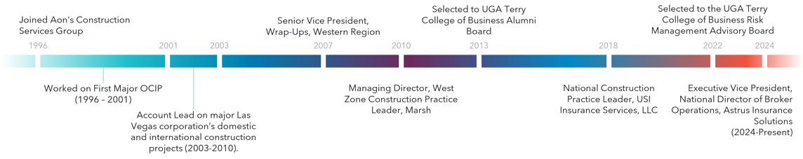 Danette viewed this life change as an opportunity to build a professional network and develop technical skills, which mapped the path to significant leadership opportunities across the premier insurance brokerage and construction risk management firms.