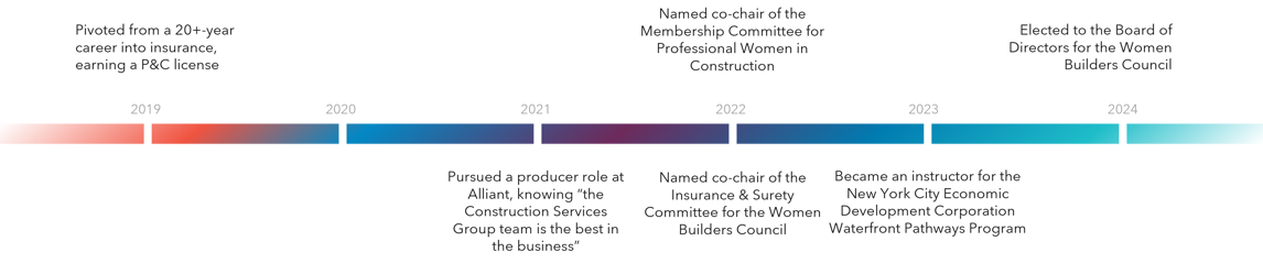 “Perhaps my most defining moment was reinventing myself yet again - entering the insurance industry from scratch, walking straight into the competitive mid-market New York construction space and building a thriving career rooted in trust, expertise and client advocacy.”