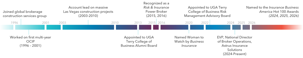 Danette got her start in the insurance industry as an undergraduate student, studying risk management and insurance at the University of Georgia. Upon graduation, she moved cross-country to Los Angeles, a move that would shape the next 25 years of her life, to kickstart an illustrious career that began with handling two regional contractors based in California.